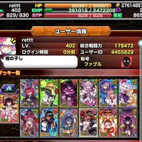 廃課金垢です。課金額は覚えていませんが200万以上はしてると思います。1枚入手するのに時間がかかる剛腕サンタも24枚所持しているため、コロシアムでも即戦力として戦えます。GODの数は数えきれないの / プレイヤーレベル:576レベル 竜石の数:259個 GODの数:1体
